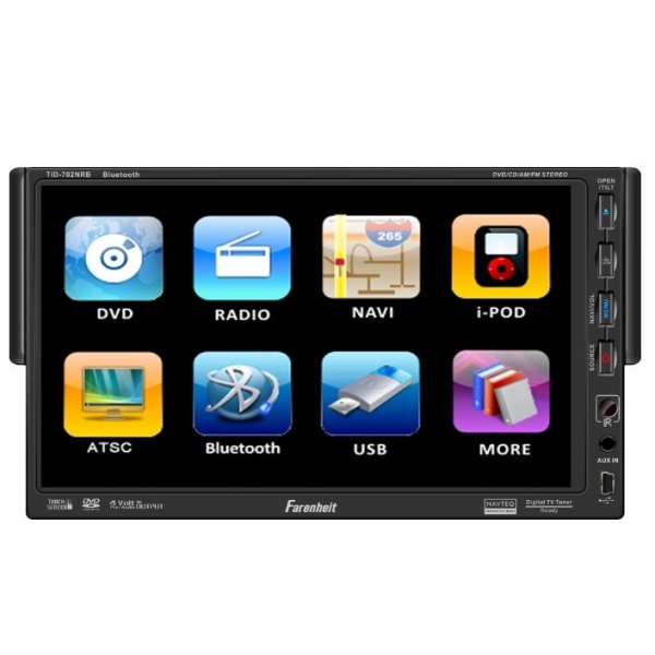 ![]() Автомагнитола Farenheit TID-702NRTTID-702NRT - CD/DVD - автомагнитола с выходом AUX на передней панели. Краткие технические характеристики: 4x50 Вт, CD-R, CD-RW, DVD-R, DVD-RW, MP3, WMA, усилитель, эквалайзер, функция CD-Text, FM/AM радио, сенсорный дисплей, слот для карт памяти SD/MMC, поддержка камеры заднего вида, TV-тюнер.